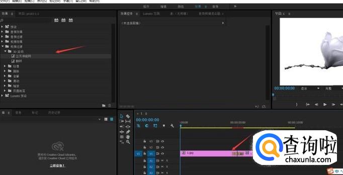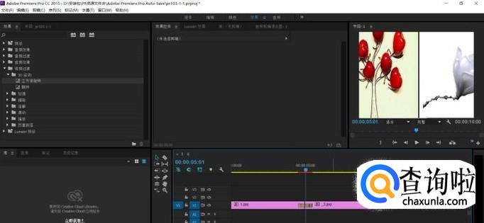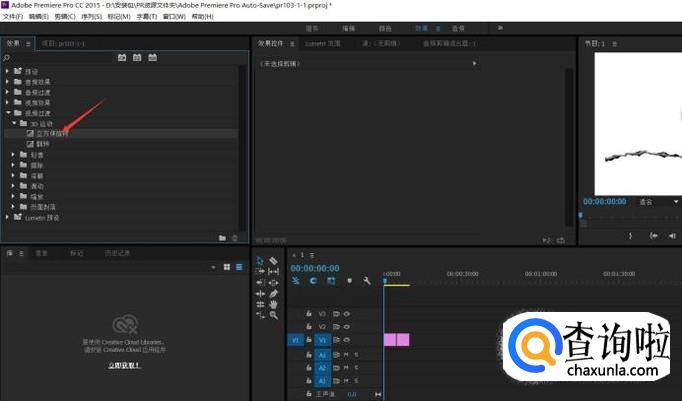 添加转场:在效果中查找自己所需的视频效果,并选择所需效果。图中以其中一个转场效果为例。