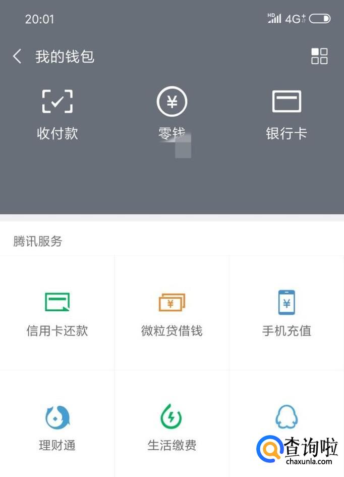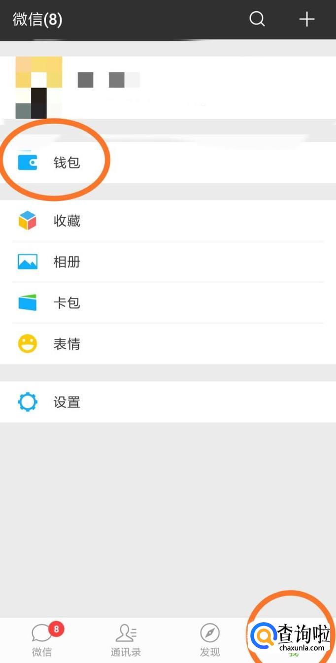 打开微信,点击右下角“我的”,进入之后找到“钱包”