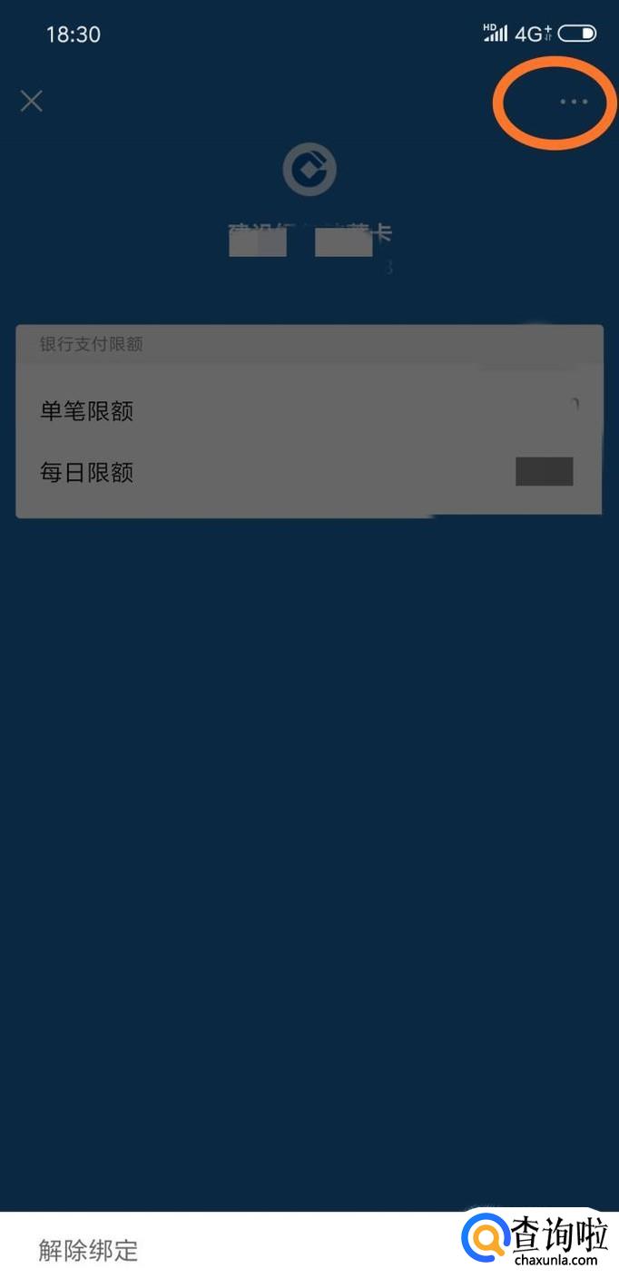 若想解除绑定,可以选择想要解除的银行卡,进入后点击右上角的扩展符号,会出现解除绑定选项,点击即可