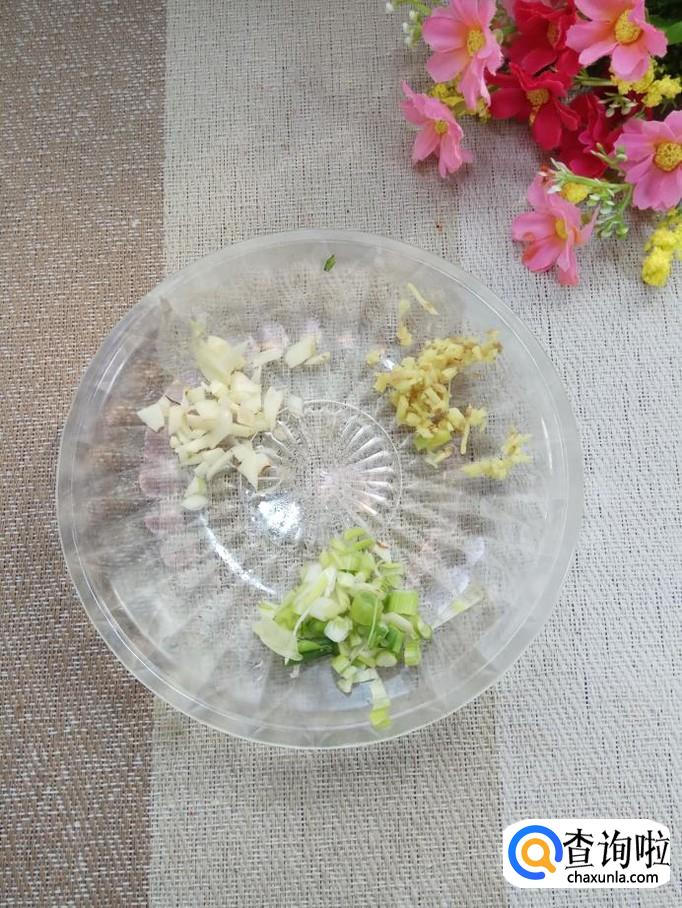 准备适量葱,姜,蒜洗净后,全部切成碎末备用,将洋葱,青椒,火腿肠放在一起,将葱末,姜末,蒜末也放进去。