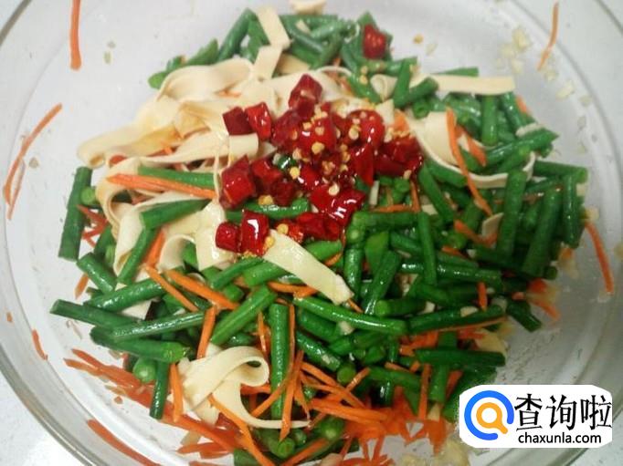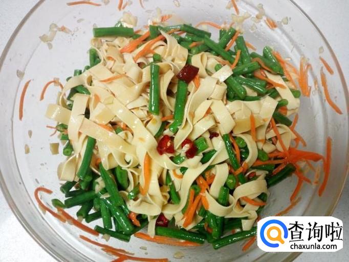 豇豆拌干豆腐,是把豇豆和干豆腐经水炒过后,再配辅料一起拌制而成的凉拌菜。口感咸香爽口,味道鲜美,风味独特,是一道美味的下饭凉拌菜。下面介绍一下这道菜的做法。