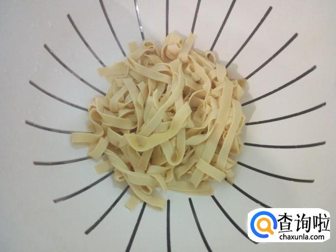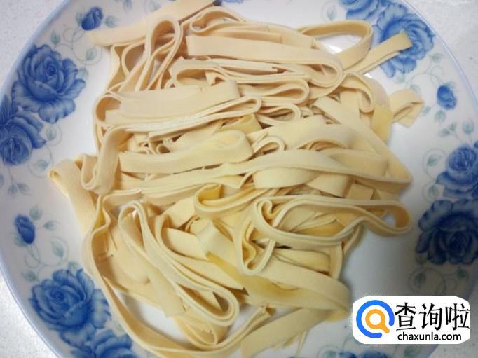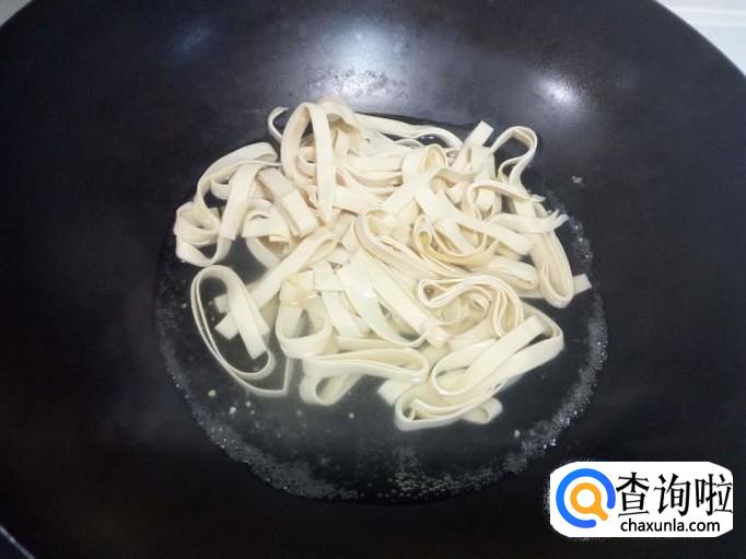 干豆腐用开水焯一下,水开后入锅煮一分钟的时间捞出,用水冲洗一下,沥干水分。