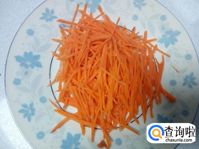 胡萝卜去皮,用水清洗干净,控干水分,切成细丝。