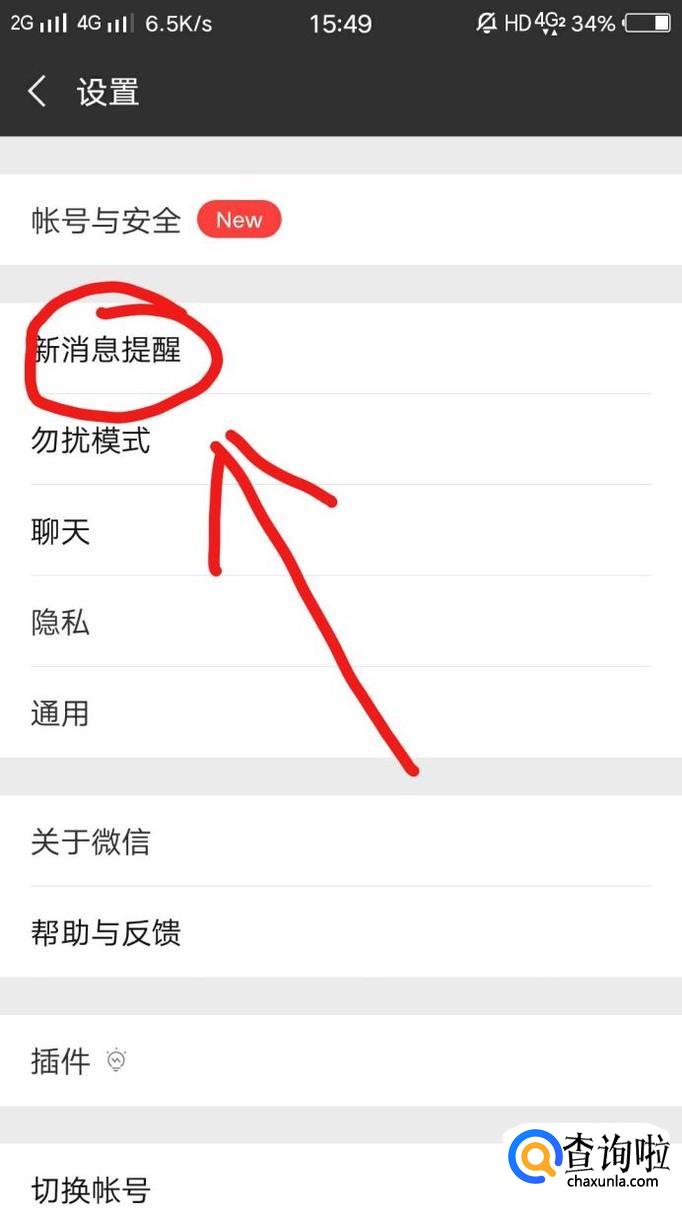 点击“新消息提醒”,进入下一页面,如图所示。