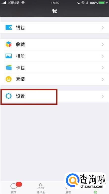 首先点击微信中的设置,如下图所示。