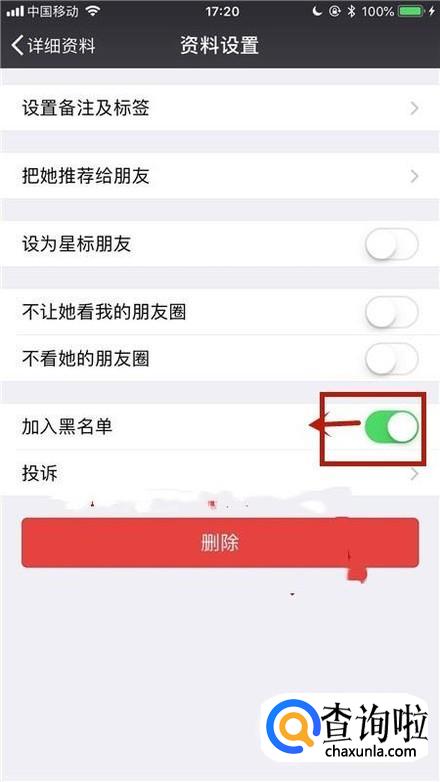 最后点击关闭黑名单开关就可以了。