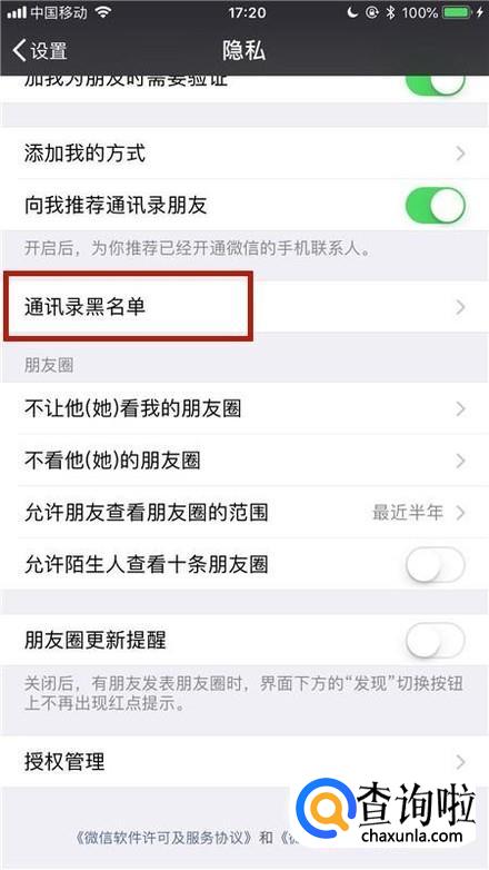 接着点击通讯录黑名单,如下图所示。