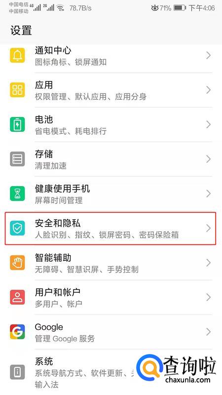 在设置中找到安全与隐私功能。