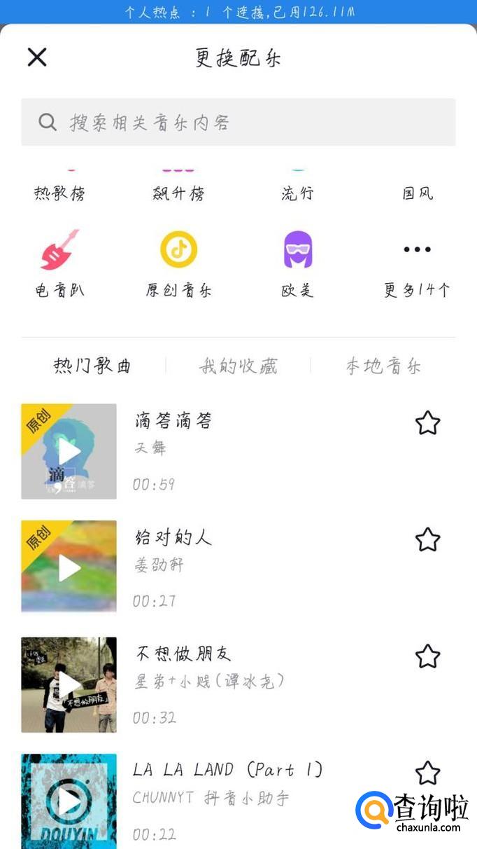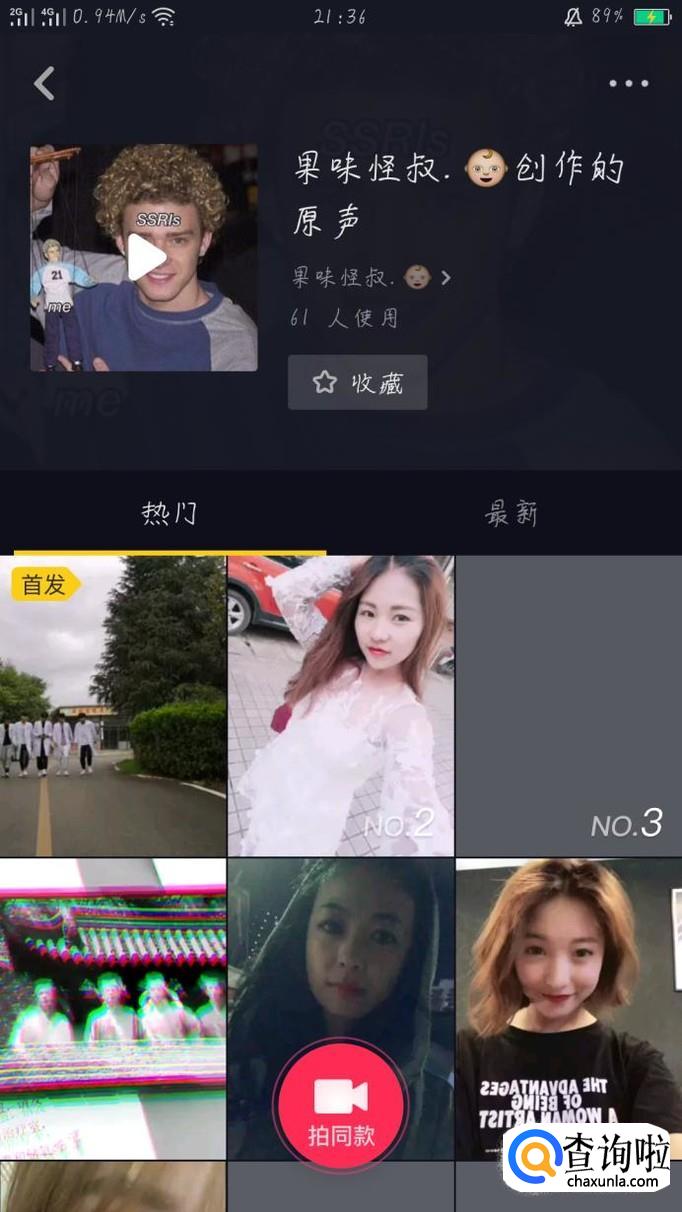 你可以点击搜索,直接找你想要的音乐,也可以找你想要拍的话题。