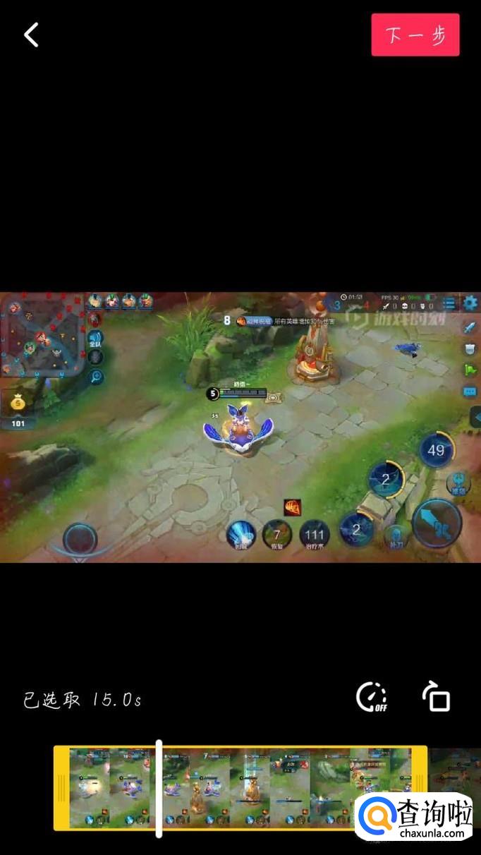 把你的视频上传之后,点击右上角的下一步。选择你要上传的15秒,选择你所需要的特效,音乐等。