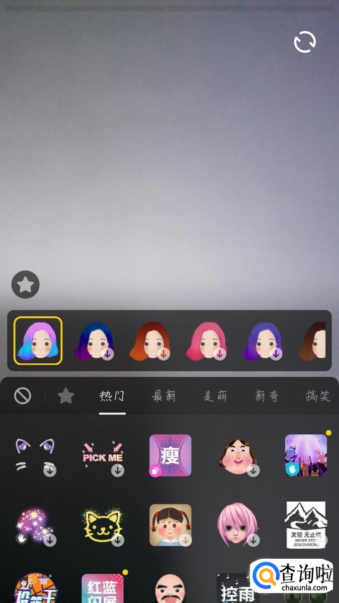 在拍摄里面,你可以选择很多特效,美颜特效,表情包特效等等。