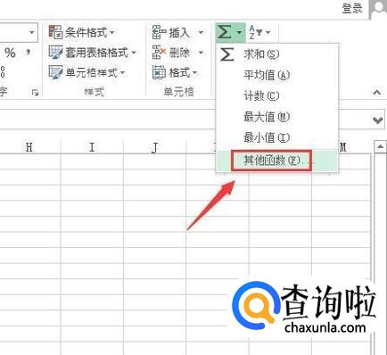 点击自动求和选项在其下拉菜单那里找到其他函数选项,如图所示: