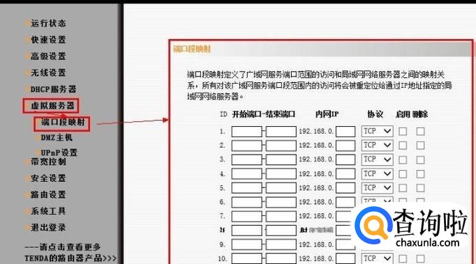 点击虚拟服务器,打开“端口端映射”界面。