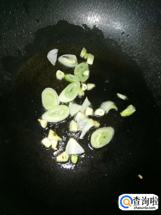 开火,加入适量的食用油,待油温升高后,将大葱和蒜头入锅炒香;