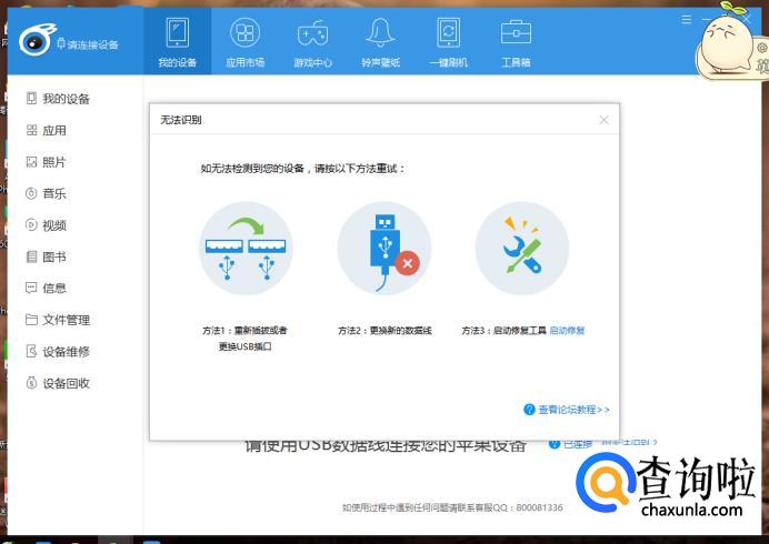 所以我们需要通过苹果数据线根据提示连接电脑。