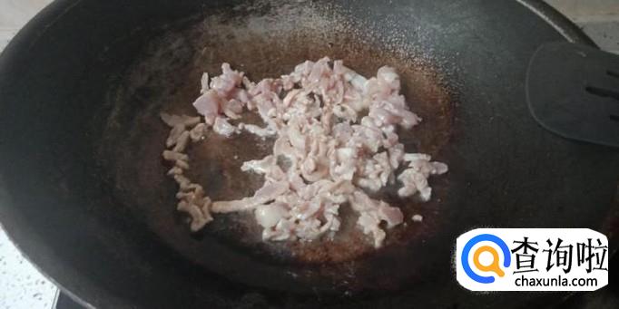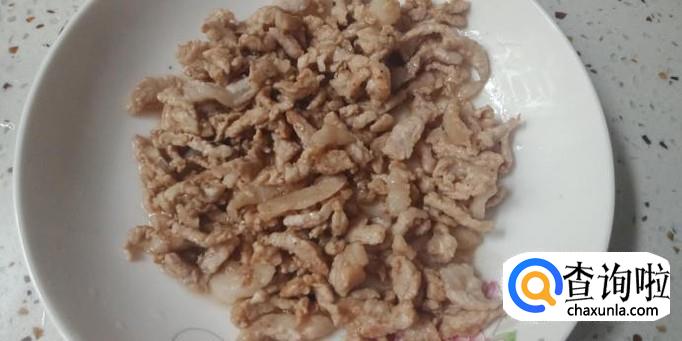 起锅下油,等到油热了以后,就能把肉丝放进去翻炒,自己感觉差不多了以后,就能把炒好的肉丝装在盘子中放在一旁。