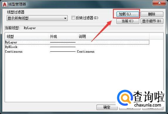 点击加载选项在弹出的对话框内选择我们需要使用的线型,然后依次点击确定我们就将该线型加载进来了,如图所示: