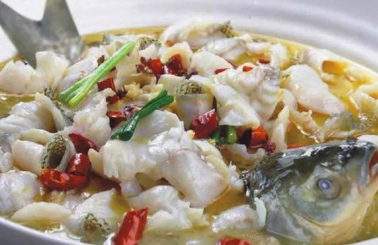 酸菜鱼以草鱼为主料,配以泡菜等食材煮制而成,口味酸辣可口;鱼含丰富优质蛋白,能提供人丰富的蛋白质、矿物质等营养;酸菜中的乳酸可以促进人体对铁元素的吸收,还可以增加人的食欲。