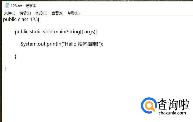 首先新建一个记事本,然后在其中加入如下的java内容,如下图所示