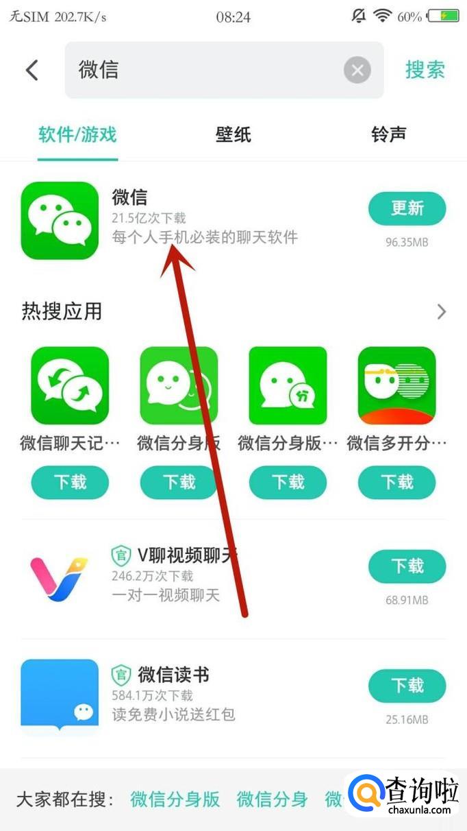 进入之后,在图示位置搜索“微信”。
