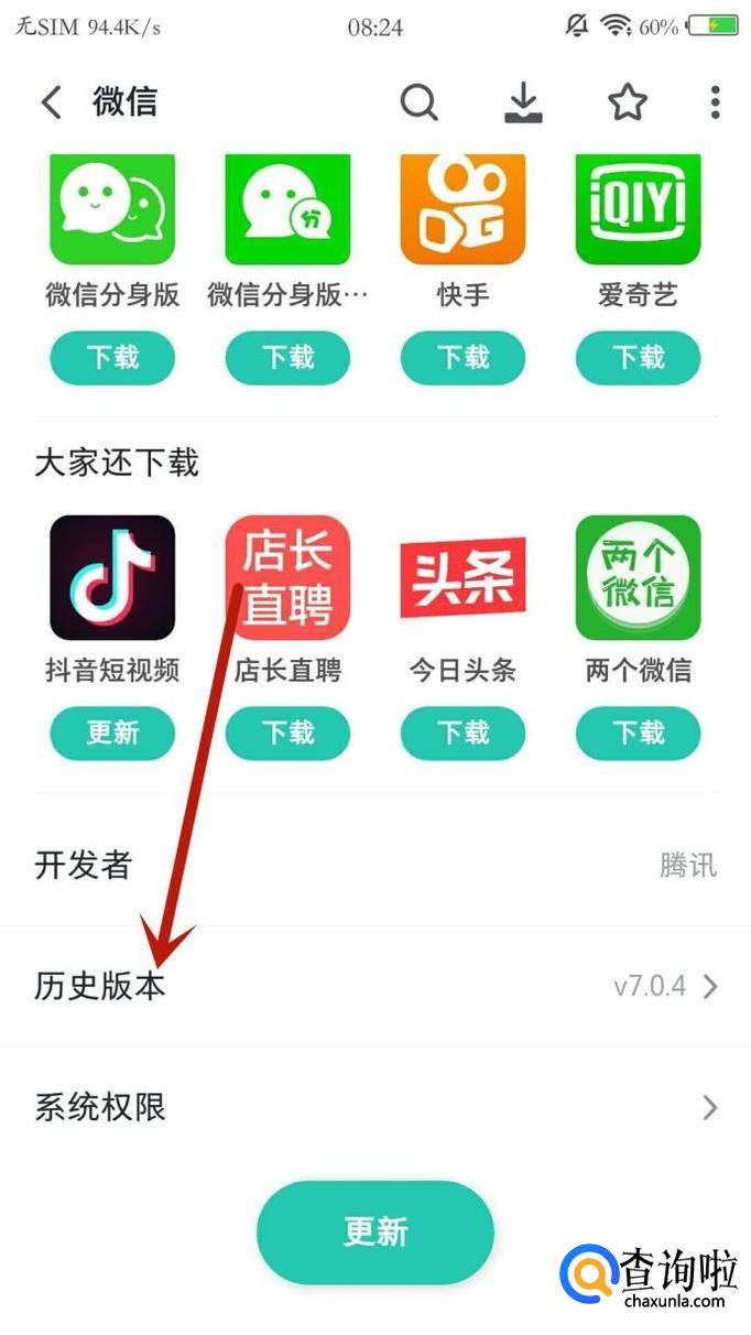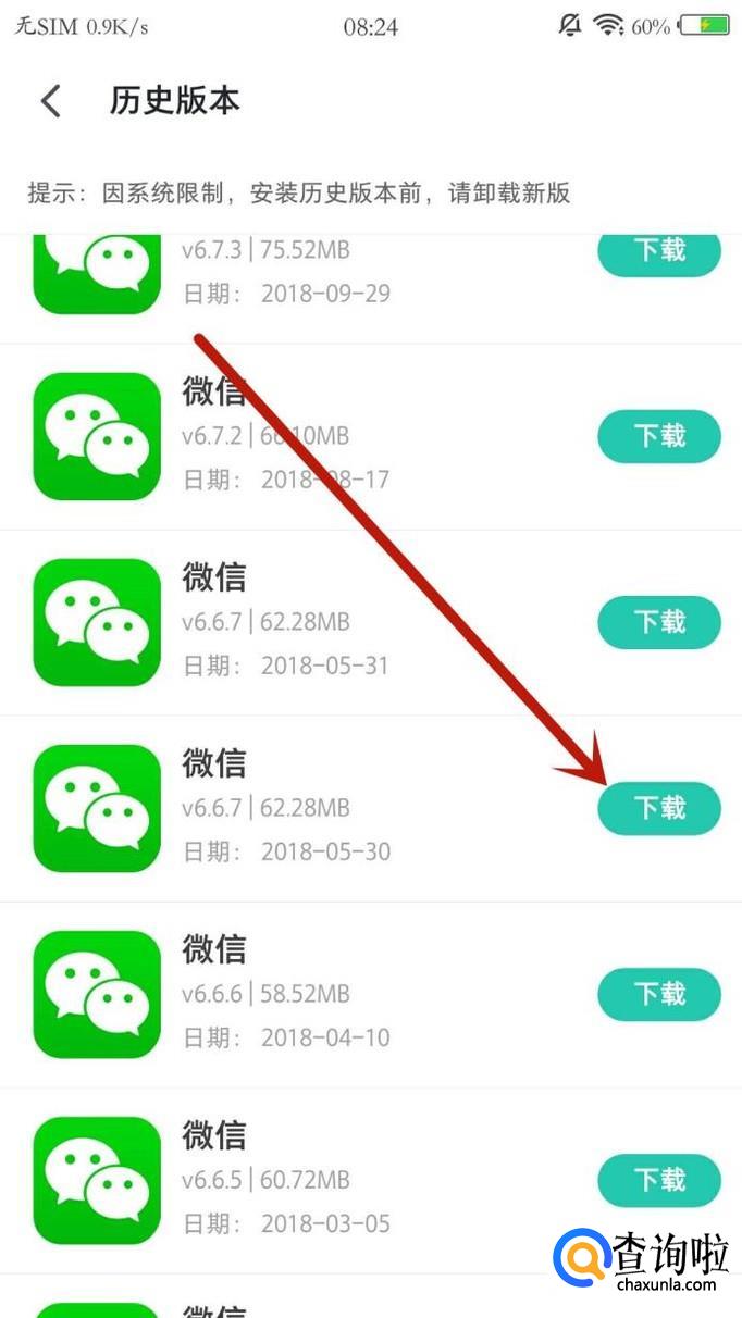 安卓手机下载旧版本微信,可以通过应用市场,在微信下载页面最低端点击“历史版本”,选择想要下载的旧版本,点击“下载”即可。