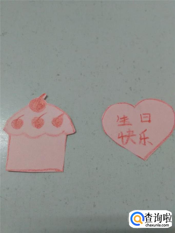 用剪刀把蛋糕和桃心都剪下来。
