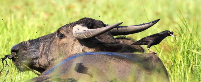 春耕季节,在中国南方的农田中,常可以看到如下场景:水牛在田里走动或者耕田,八哥就跟在水牛的旁边活动,或者干脆站在它们的背上。而水牛呢,对于落到身上的苍蝇总是毫不客气地用大尾巴驱赶,对于八哥这种粗鲁行为却不以为然。这到底是什么原因呢?