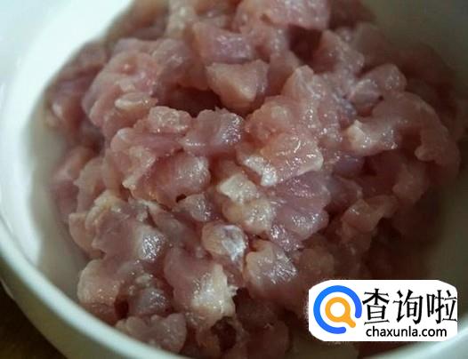 瘦肉清洗干净,切成肉沫,肉沫切得越碎越入味哦。
