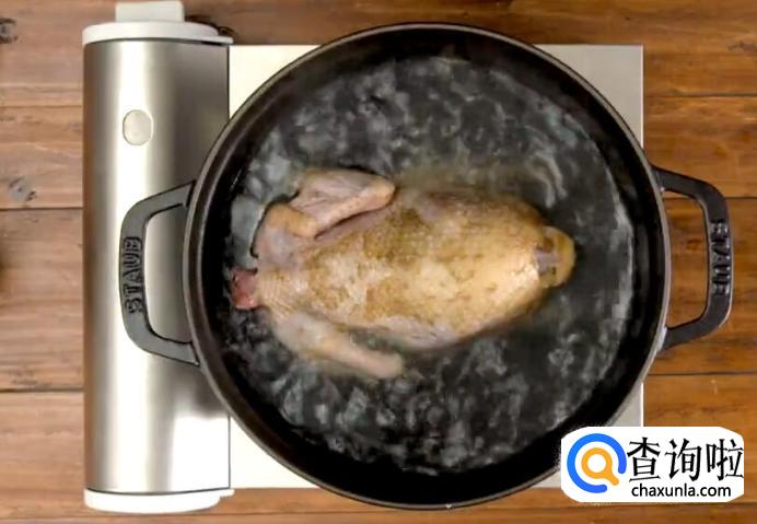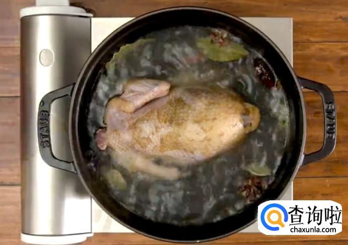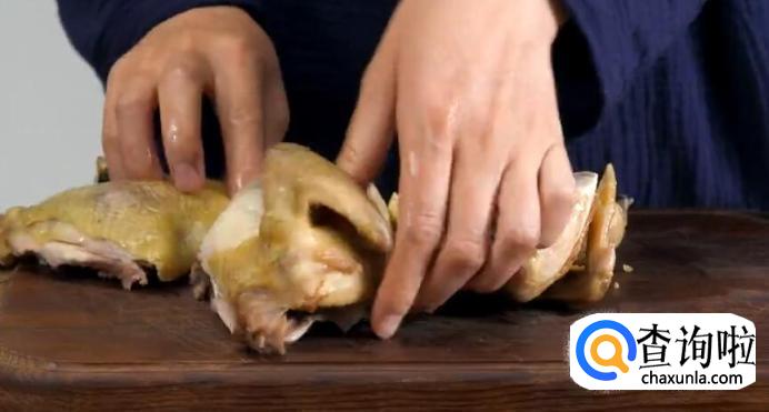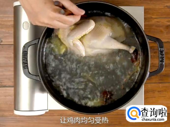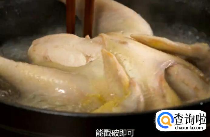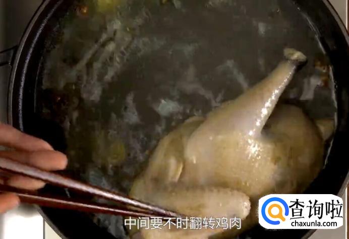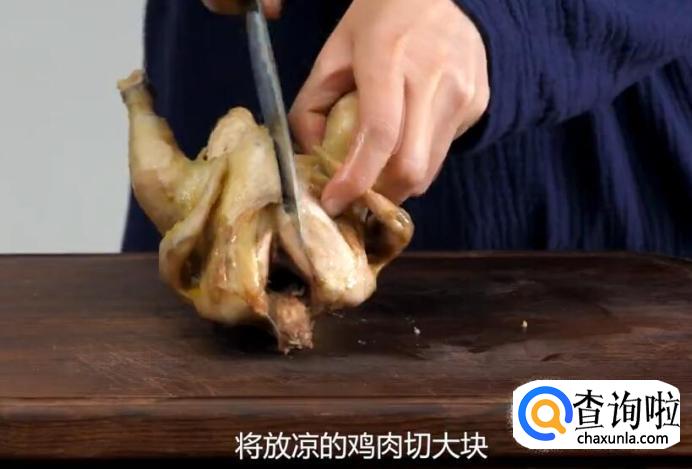 然后将鸡肉捞出,放置在一边, 待其凉透。