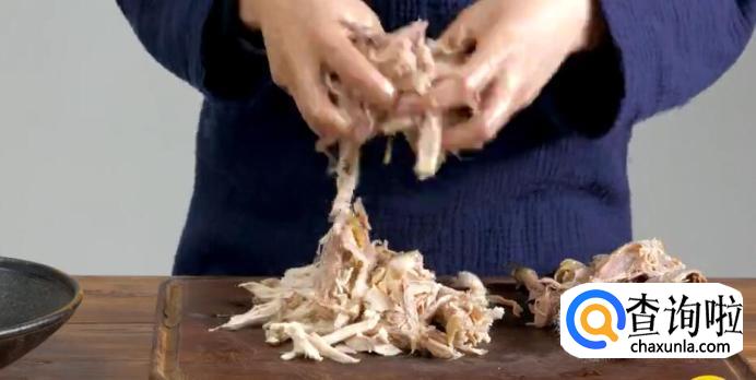再用手撕出鸡丝。