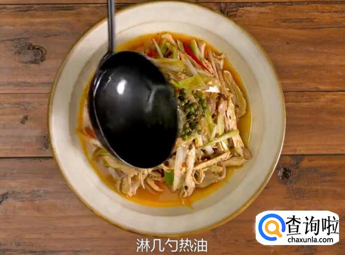 装盘后,加适量藤椒,淋几勺热油,将藤椒的香味激发出来就完成了。