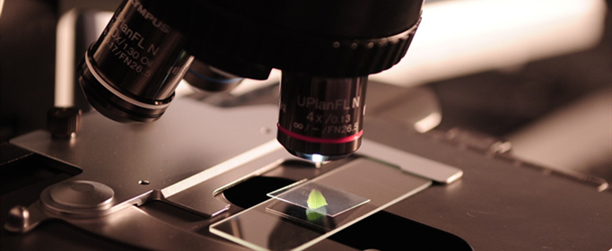 5、把所要观察的玻片标本放在载物台上,用压片夹压住,标本要正对通光孔的中心。