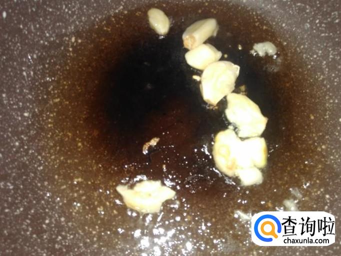 开火下油,放蒜米进去爆香。