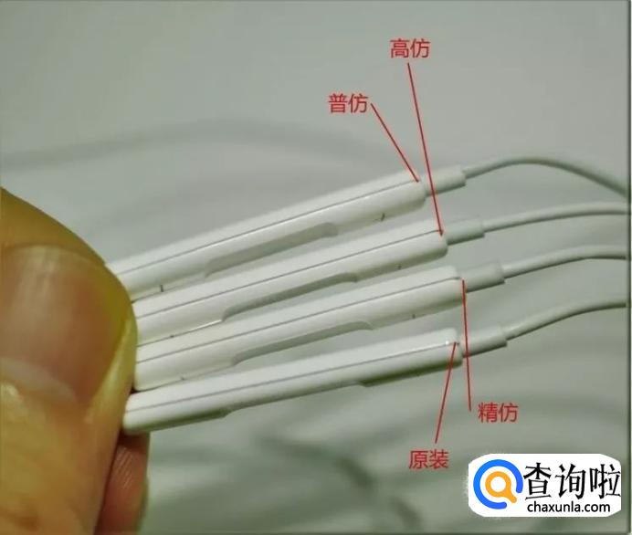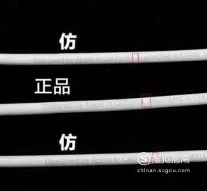 首先是序列号。正品苹果耳机在接口处20cm的地方用激光打印了一排序列号。它虽然字迹浅浅的,但是很难被擦掉。打印内容根据出厂地不同内容有些许差别,但格式是固定的。比如“Designed by Apple in California Assembled in China DTV……”每一小段话的中间是隔开两个空格键。假的耳机要么没有印字,要么字迹用手一擦就会被擦去,要么空格的格式不正确。