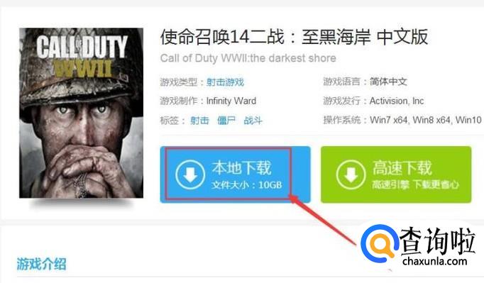 接下来,我们将打开该游戏的下载网站,点击网站中的“本地下载”按钮。