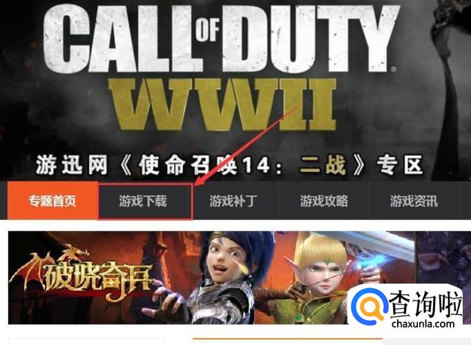 打开游戏网站之后,点击游戏网站主页面顶部“游戏下载”菜单按钮。