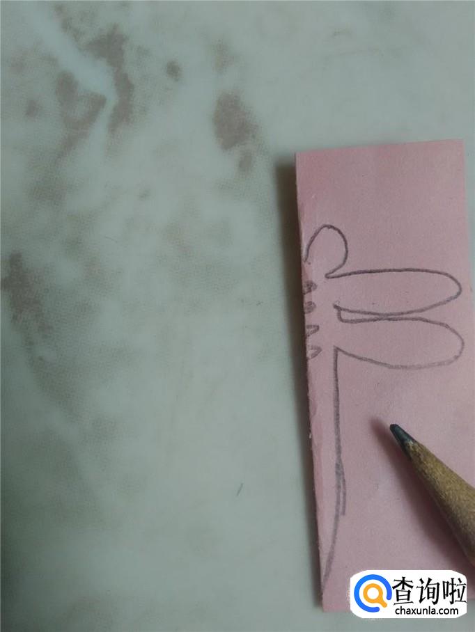用剪刀沿着蜻蜓右侧的轮廓剪下来。