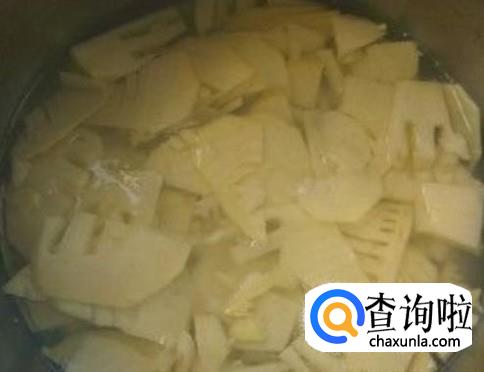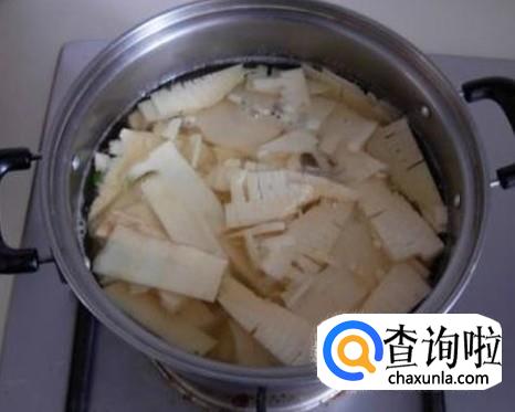 用锅装适量的水煮沸,然后熄火,放笋进去灼5分钟左右。