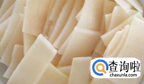 把冬笋去皮,削去老笋,然后切成一片片。