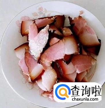 捞出来放到冷水里泡2个小时左右,然后捞上碟子,腊肉切成片备用。