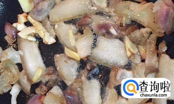 腊肉下锅,大火翻炒1分钟左右。