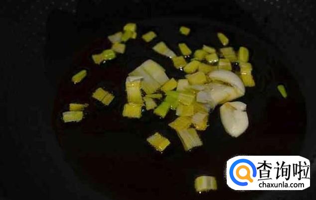 热锅下油,放姜片、蒜米进去爆香。