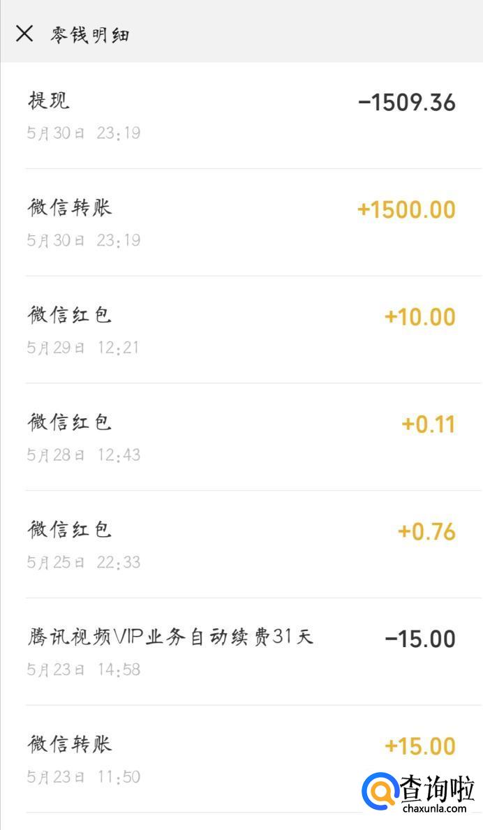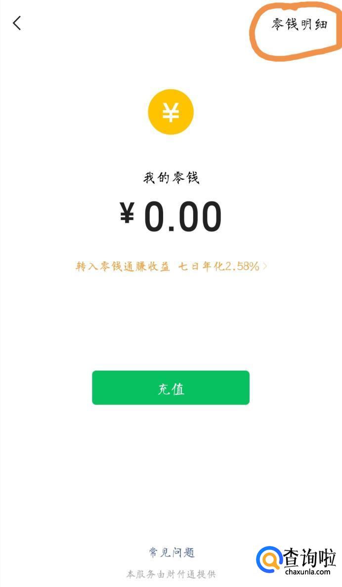 在零钱界面的右上角可以看到有个“零钱明细”功能,点击进入