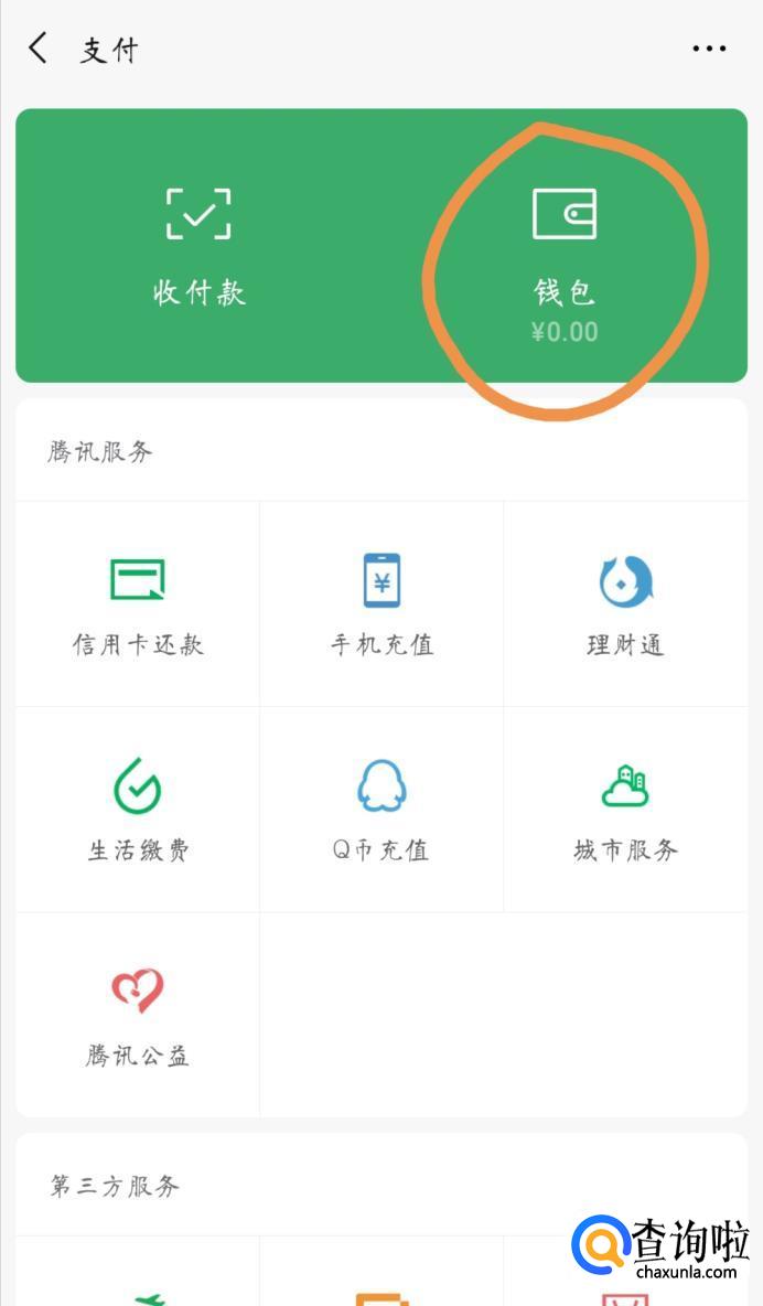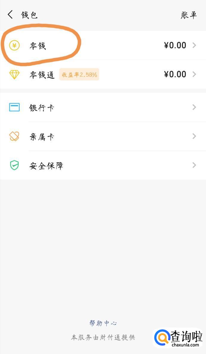 进入钱包以后可以看到最上方有个“零钱”功能,点击进入
