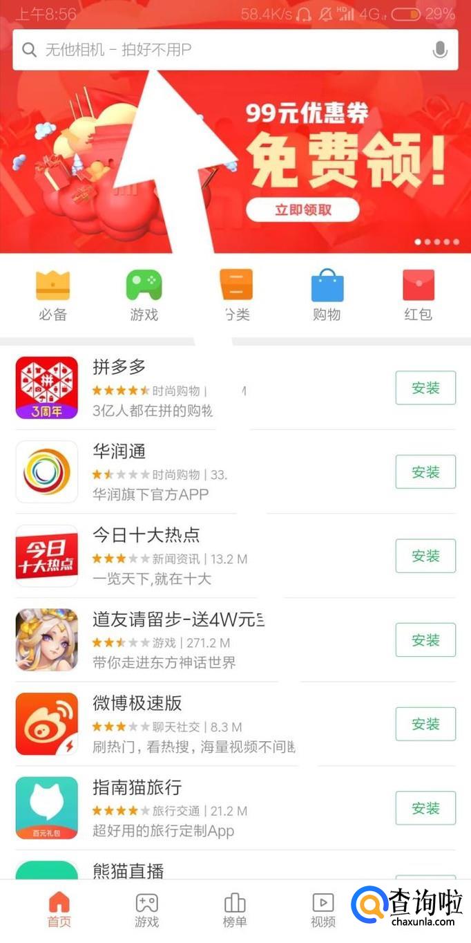 接着点击搜索结果的“安装”字样即可。