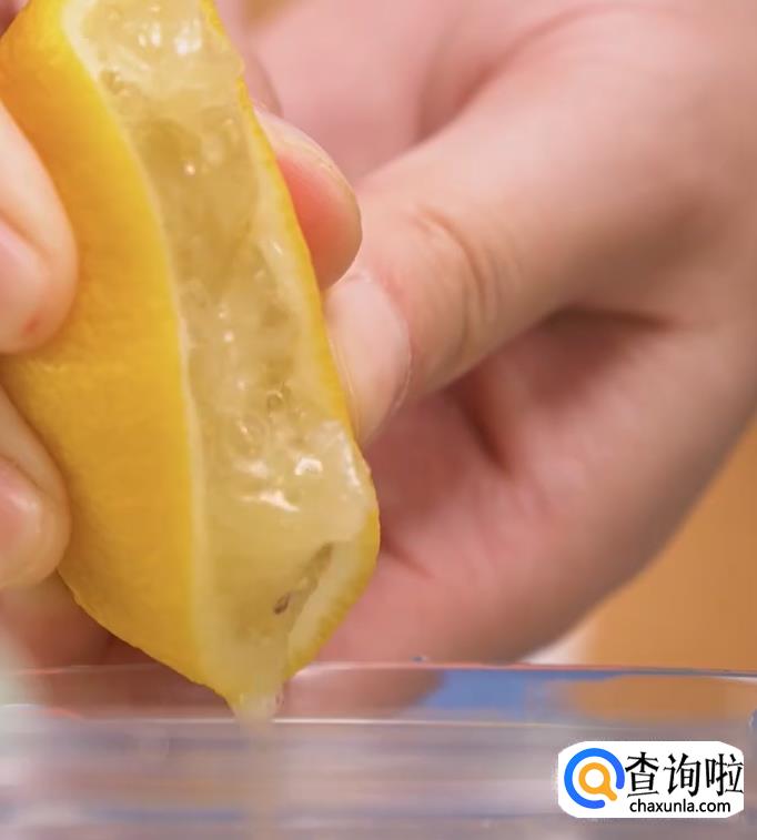 将杨桃和青苹果放入容器后,挤入柠檬汁。