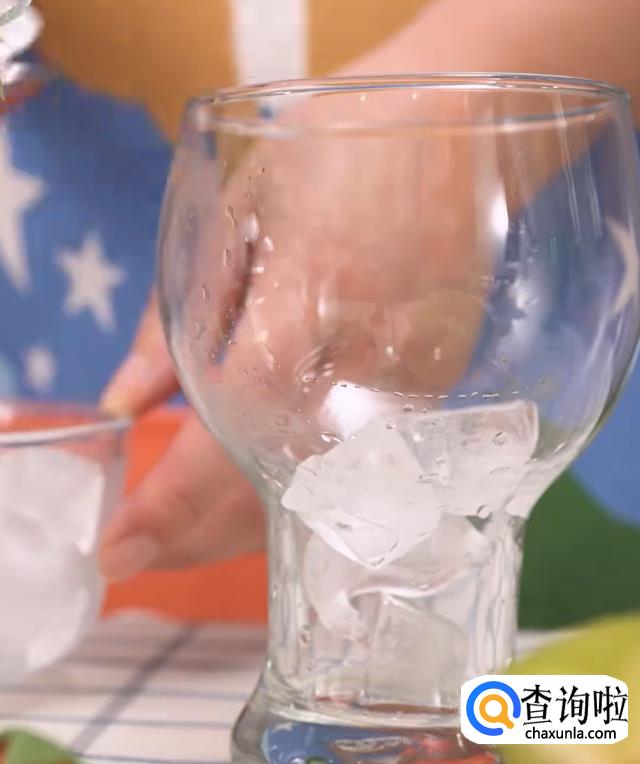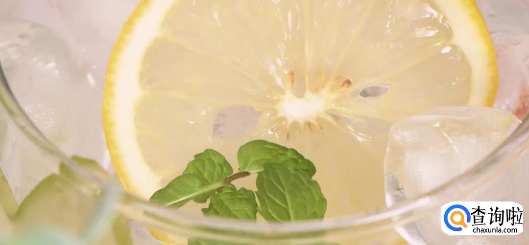 取另外的容器放入冰块,柠檬、杨桃和薄荷作为装饰。