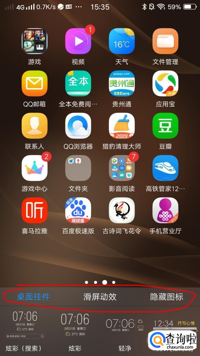 打开手机,长按屏幕,就可以在屏幕下方进入栏目。