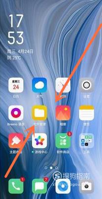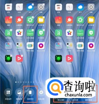 打开realme x手机,进入桌面之后找到有空白地方的页面,双指在屏幕对角的地方向内缩进