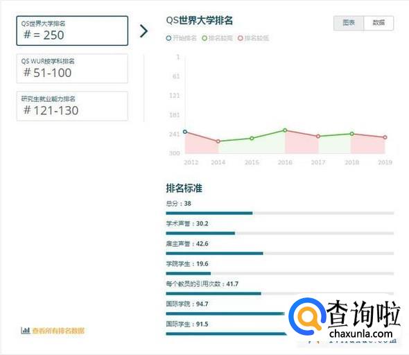 注:QS世界大学排名是世界公认最具影响力的全球性大学排名之一,主要评价指标为:学术领域的同行评价(40%)、全球雇主评价(10%)、单位教职的论文引用数(20%)、教师/学生比例(20%)、国际学生比例(5%)、国际教师比例(5%)